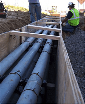 Most noteworthy is the staggering volume of materials required for the project. We installed almost 200,000 linear feet of various wire types, over 81,000 feet of PLD lead cable, and more than 10,000 feet of encased conduit. Our splicing and termination specialists made nearly 300 lead cable splices. Our crews installed 77 wood utility poles, 140 light poles and fixtures, and 300 precast electrical structures.